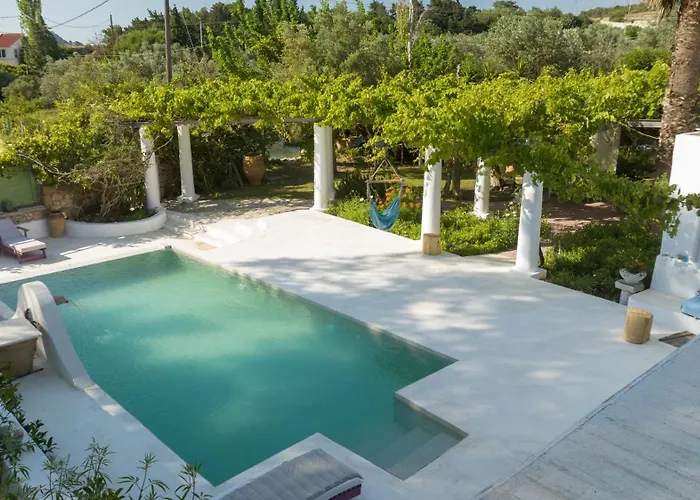 Oliveyard Stone Built House- With Pool Non Chlorin ligger cirka 5 minutters kørsel fra Vandpark og tilbyder overnatning med gratis parkering, en udendørs pool og en have. Bygningen består af 2 værelser og 2 badeværelser.